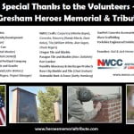 After five years of fund raising and a year of construction on May 2, 2009, the Heroes Memorial & Tribute was dedicated. She was built through the generosity of citizens and corporate sponsors and one of the few projects within the City that was completely paid-in-full on the day of dedication. Located within the parameters of an area known as Small Park, which had been cared for by the Optimists Club for many years, on the corner of Powell and Roberts adjacent to Main City Park in the heart of downtown Gresham, Oregon.